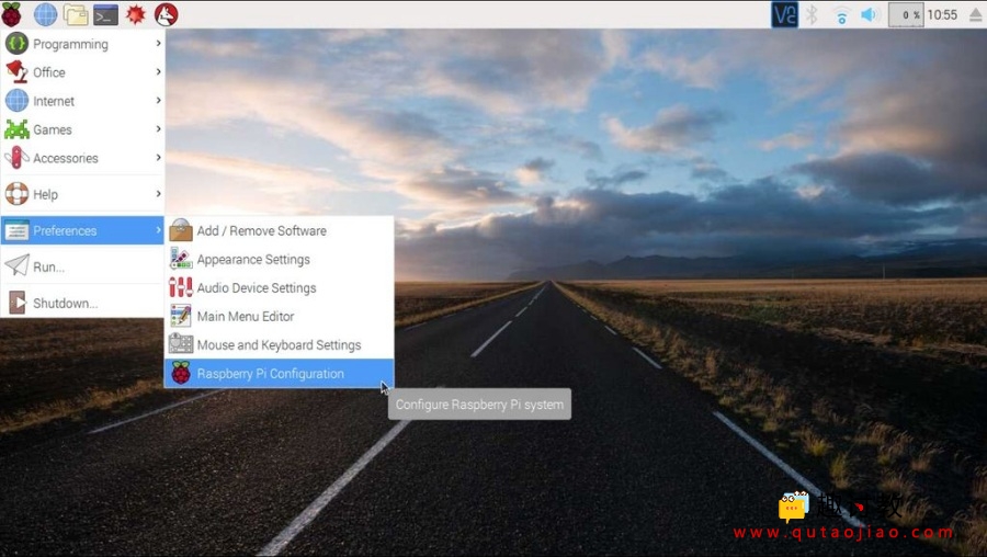- 要更改密码,请单击首选项,然后选择Raspberry Pi Configuration,它将提供一个弹出窗口。